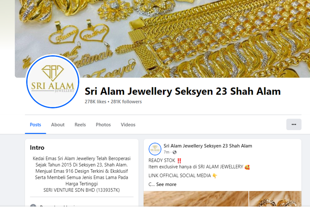 Selamat Datang ke Kedai Emas Sri Alam Jewellery Seksyen 23 Shah Alam