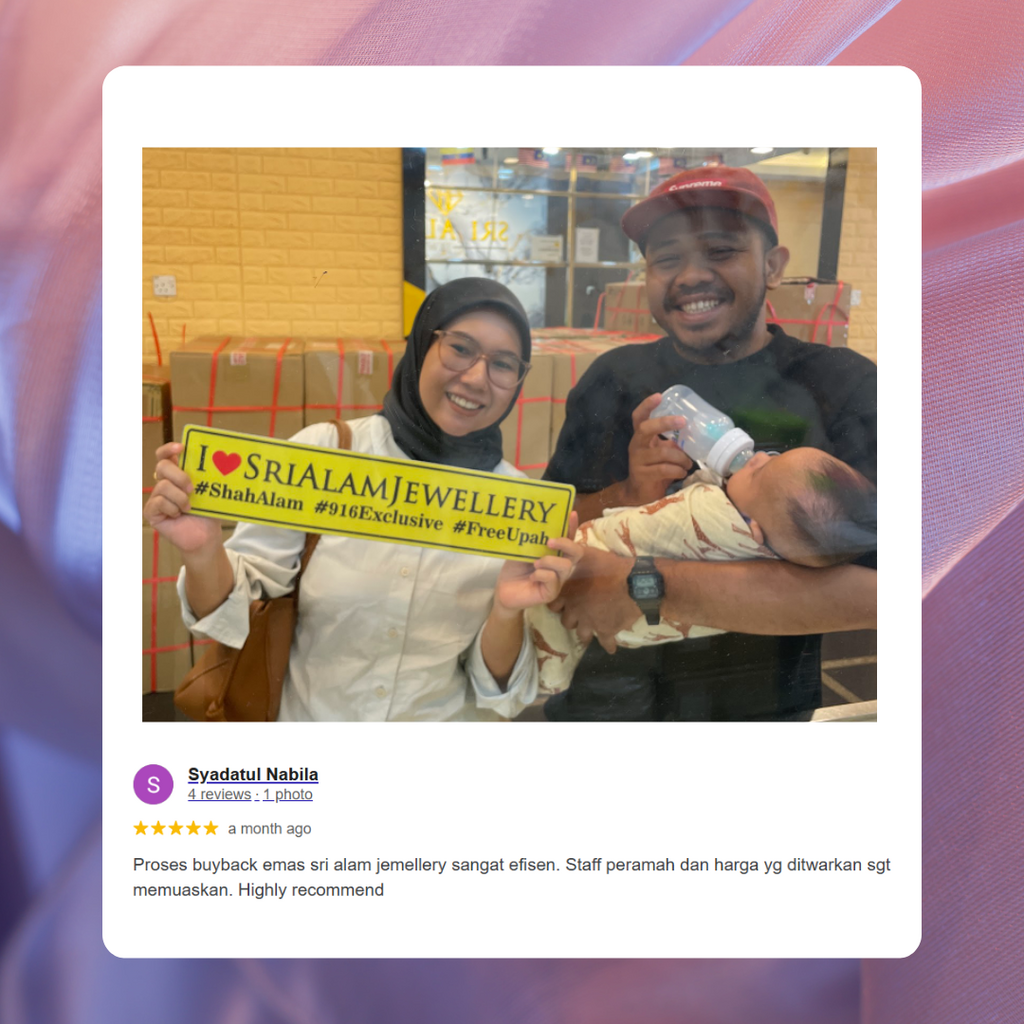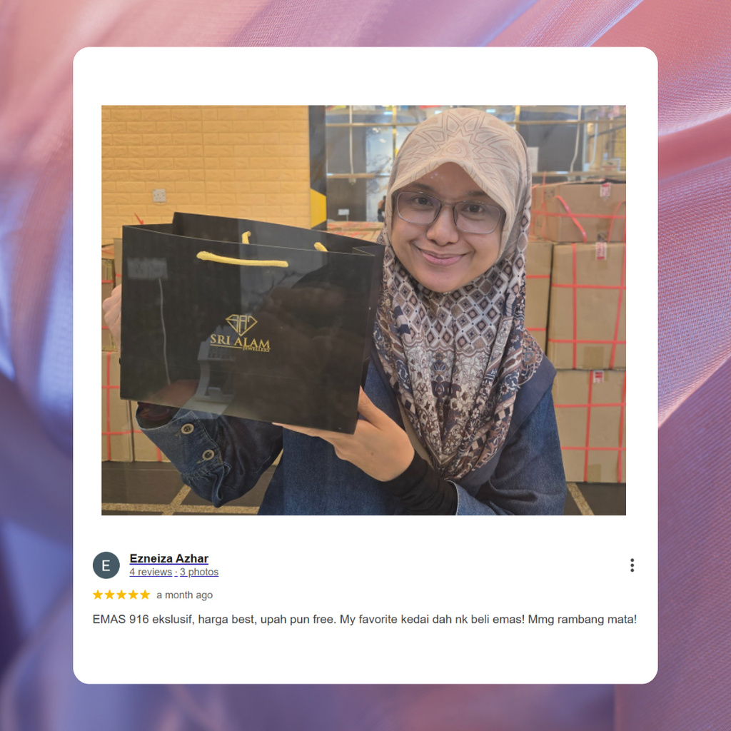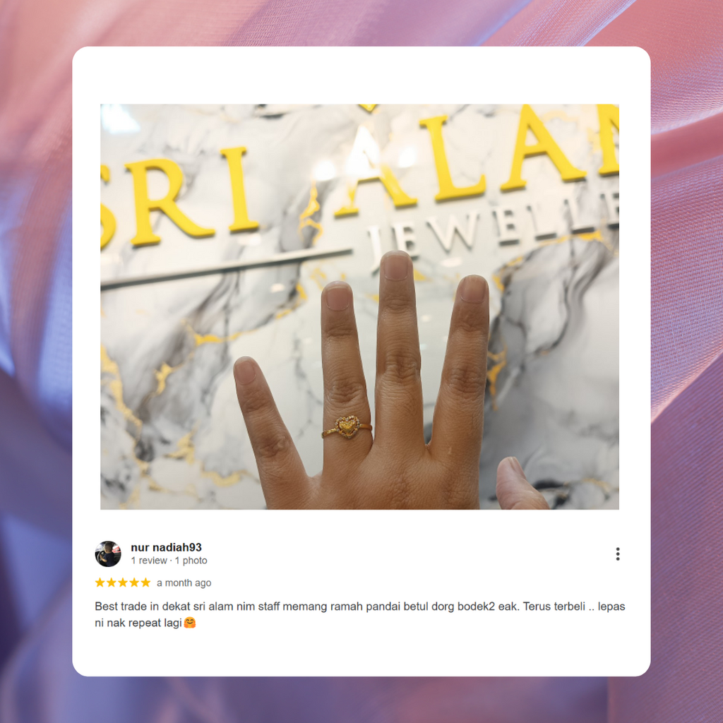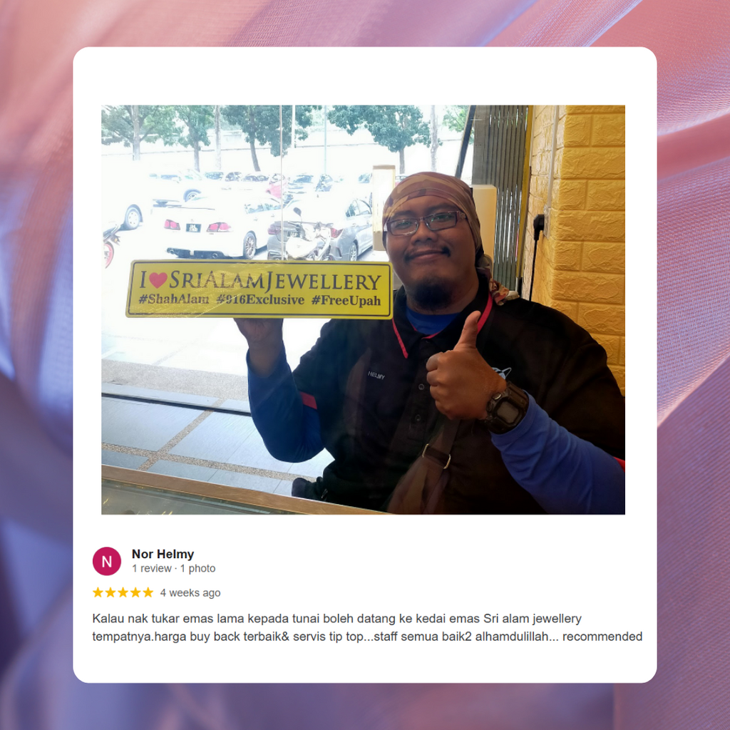 Kami di Sri Alam Jewellery sentiasa berusaha untuk memberikan pengalaman yang terbaik kepada setiap pelanggan kami. Jangan hanya percaya pada kata-kata kami—dengarkan apa yang pelanggan kami katakan!